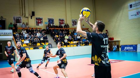 Latvijas čempionātā volejbolā vīriešiem pirmajās pusfināla cīņās nedēļas nogalē savā laukumā pa uzvarai svinēja “Ezerzeme”/DU un “Robežsardze”/RSU vienība.