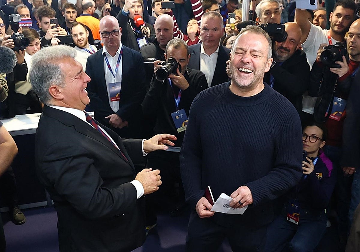 Joan Laporta ha sido escogido mayoritariamente por la masa social del Barcelona, que se ha decantado por la continuidad de un proyecto y el actual modelo de gestión desechando el cambio propuesto por Víctor Font. Es lo que dice el sondeo final, realizado por TV3 y Catalunya Radio (uno de los más fiables) tras 5.572 encuestas, a falta del resultado oficial. El resultado favorece ampliamente a Laporta por un 66,6 por ciento respecto al 30,9 conseguido por Font. El empresario catalán, como en 2021, salió derrotado de un plebiscito en el que se veía capaz de aglutinar no solo a sus partidarios sino a los descontentos con Laporta. Si en algún momento, tras el último debate electoral o las acusaciones de Xavi Hernández («Laporta me falló e impidió el regreso de Messi cuando estaba todo acordado»), dio la sensación que había partido, ésta se diluyó en cuanto el Camp Nou abrió sus puertas a las nueve de la mañana. Joan Laporta (socio 9.601) se dio un auténtico baño de masas y aglutinó todos los ismos que históricamente han fracturado al barcelonismo. Ubicado estratégicamente en la puerta lateral por dónde entraban socios destacados del club, les acompañaba personalmente hasta la urna. De esta manera escenificó su ascendente sobre el primer equipo (foto con Bojan y Deco, aclamados por la multitud), sobre el pasado (recibió a Sergio Busquets), sobre el fútbol femenino (se abrazó a Aitana Bonmatí) y las secciones (Juan Carlos Navarro, Xavi Pascual, Kevin Punter, Audie Norris o Andréi Xepkin también pasaron por las urnas). Laporta también se mostró cercano al 'Nuñismo' (logró el apoyo público de Valero Rivera, que salió en la foto junto a Masip), enarboló la bandera del 'cruyffismo' (efusivo junto a Dannu, la esposa del mítico neerlandés) tras las acusaciones de la candidatura de Font de su mala relación con Jordi Cruyff y se ganó el voto de la burguesía catalana ayudando a votar al ex presidente de la Generalitat Jordi Pujol. «Hoy, los culés, en un acto de civismo absoluto, lo están viviendo desde el corazón. Es una fiesta del barcelonismo. Hablan del presente y del futuro, de este Spotify Camp Nou que veo aquí con las grúas y me emociono...», explicaba Laporta con los ojos enrojecidos al ver el respaldo social que estaba recibiendo. «Volveremos por la puerta grande», comentaba mientras le filtraban algunos resultados momentáneos de las encuestas que se iban realizando. Víctor Font (socio 55.406) solo apareció para depositar su nombre en la urna y no despertó tanto entusiasmo como Laporta. Aprovechó para criticar el afán de protagonismo de su rival y su foto con Busquets: «Son relaciones personales, en este caso, con el excuñado, Alejandro Echevarría, están intentando confundir. Yo tengo relación personal con Sergio Busquets, mucha gente del equipo tiene relación con Sergio Busquets, el mejor amigo de Carles Puyol es parte de nuestro equipo, pero nosotros no hemos ido a buscar a gente para hacernos fotos y confundir a la gente». El día soleado y la disputa del partido ante el Sevilla (con una foto de 62.000 espectadores) favorecieron la participación. Josep Maria Bartomeu acudió a votar a primera hora, igual que Xavi Hernández o Ernest Urtasun, ministro de Cultura. El expresidente se cruzó al llegar con Laporta, ambos se negaron el saludo. La anécdota la protagonizó Ter Stegen, que no pudo votar al no estar en el censo electoral. A las cinco de la tarde, coincidiendo con el descanso del partido, la participación era del 33,41 por ciento (habían votado 38.257 socios), ligeramente mayor que en los comicios del 2010, los de participación más alta en la historia del club azulgrana, y menores que en las últimas, en 2021. Volvieron a verse las caras ambos candidatos tras el partido en el que el Barcelona goleó al Sevilla (5-2). Se estrecharon deportivamente las manos antes de dirigirse de nuevo a su box. Hansi Flick y varios de sus jugadores, recién duchados, fueron a votar. Acudieron Marc Casadó, Fermín, Dani Olmo, Raphinha, Pau Cubarsí, Marc Bernal, Gerard Martín, Pedri, Gavi y Araujo. «No, no diré mi voto, ¡es secreto!», bromeaba Flick, que añadía: «Es un día especial, de elecciones, no lo había vivido nunca, todo el mundo está feliz y el día ha sido sensacional». Eso sí, quedó clara su elección al ver la complicidad entre el germano y el candidato. Al igual que los jugadores, que bailaron abrazados a Laporta y no dudaban en levantarle el brazo, como ganador de los comicios. Font se dejó ver tratando de recuperar el voto, ya era tarde.
