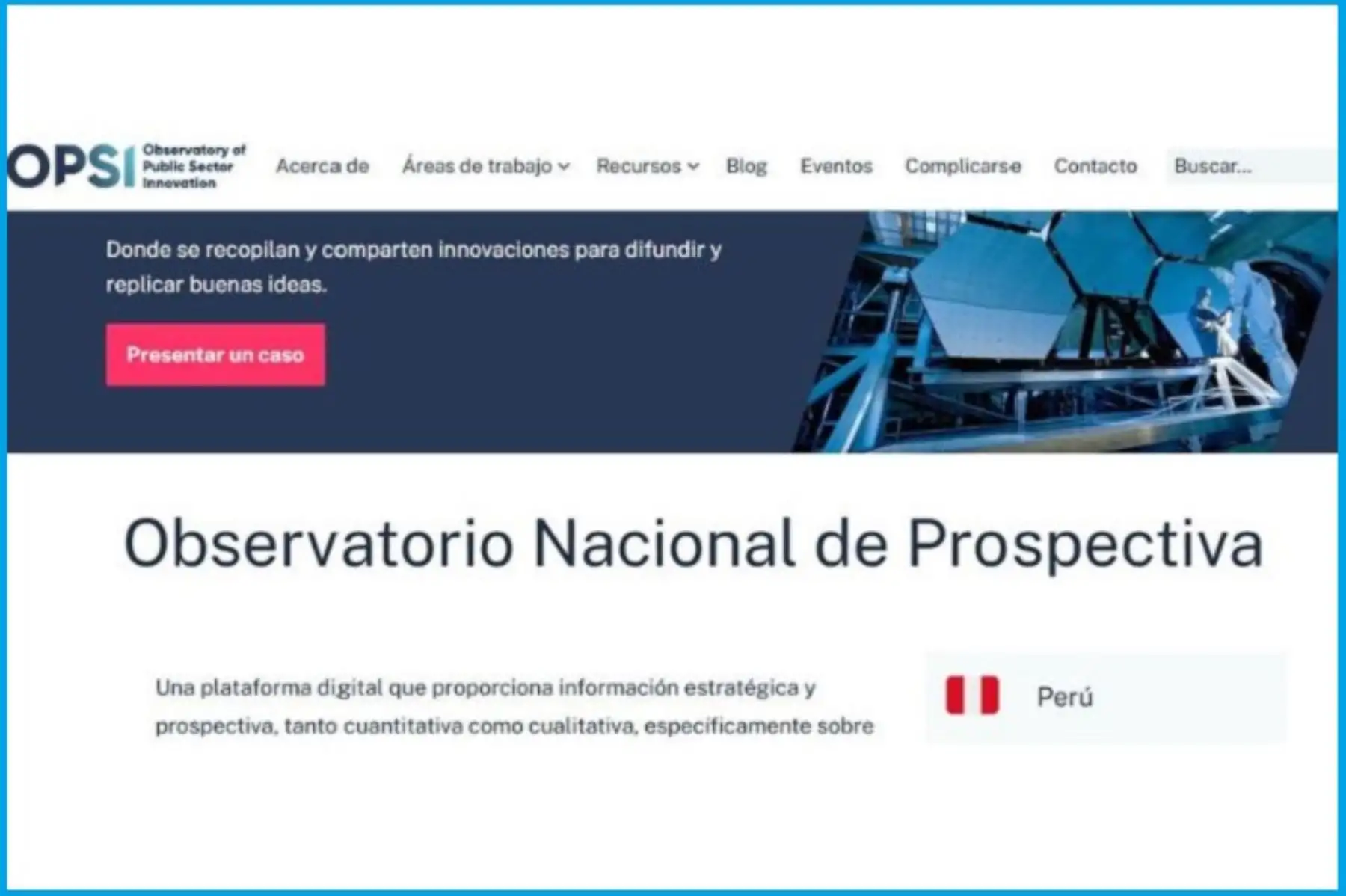 El Observatorio Nacional de Prospectiva, plataforma desarrollada por el Centro Nacional de Planeamiento Estratégico (Ceplan), fue incorporado en el portal del Observatory of Public Sector Innovation (OPSI) de la Organización para la Cooperación y el Desarrollo Económicos (OCDE).