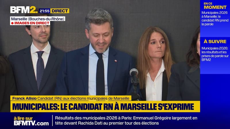 La tête de liste RN à Marseille, Franck Allisio s'exprime depuis son QG, au soir du 1er tour ce dimanche 15 mars