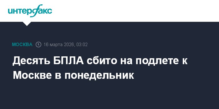 Десять БПЛА сбито на подлете к Москве в понедельник