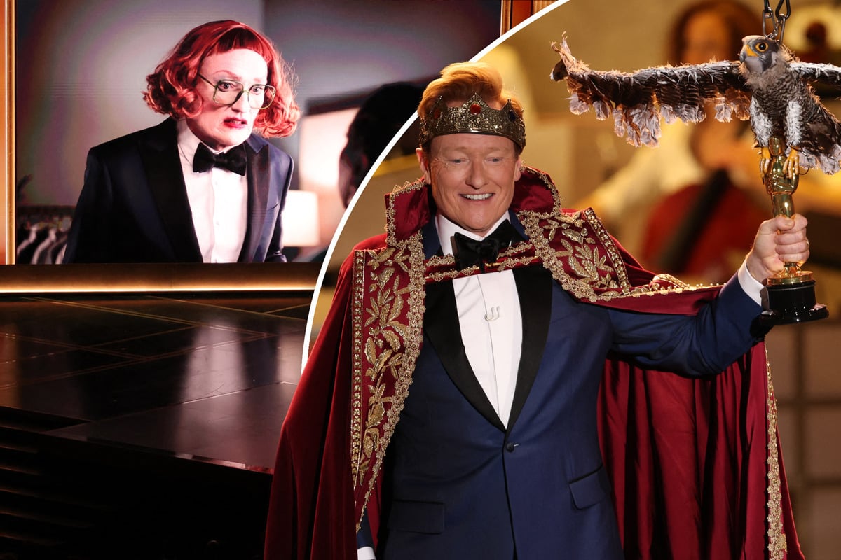 Conan O'Brien ließ sich bei den Oscars als Grusel-Oma von einer Kindermeute durch die Filmwelt jagen - ehe er sich Minuten später zum König krönen ließ.