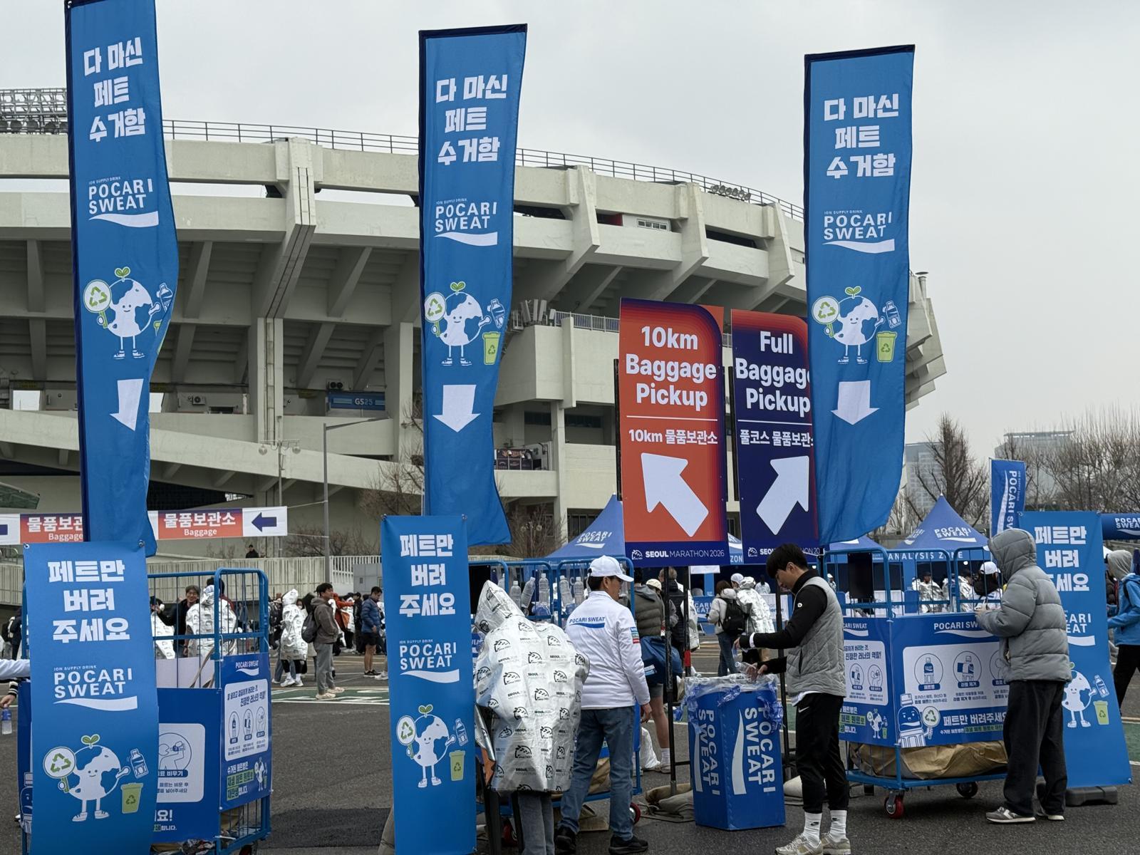 동아오츠카는 지난 15일 서울 도심에서 열린 ‘2026 서울마라톤’에서 자사 브랜드 포카리스웨트와 생수 ‘마신다’가 공식 음료로 활약했다고 16일 밝혔다.올해로 18년째 서울마라톤과 함께하고 있는 동아오츠카는 이번 대회에 참가한 4만여 명의 러너들에게 수분 보충을 위한 음료를 지원했다.특히 ESG 경영의 일환으로 ‘마신다’ 생수를 무라벨 제품으로 공급했으며, 친환경 소재로 제작된 종이컵을 사용했다. 또 대회 중 발생한 페트병과 캔을 수거해 재생 원료 생산업체로 전달하는 자원순환 캠페인을 전개했다. 대회에서 발생한 포카리스웨트 페트병 등은 약 15만 개 규모다.현장에서는 스포츠 과학을 접목한 ‘포카리스웨트 스포츠 사이언스 존’도 운영됐다. 완주 후 지연성 근육통(DOMS) 예방을 위한 스트레칭 케어, 체수분 분석 기반 급수 전략, 아이싱 및 마사지 등 체계적인 리커버리 솔루션을 제공했다.박철호 동아오츠카 대표이사 사장은 “동아오츠카는 18년째 서울마라톤과 함께하며 다양한 스포츠