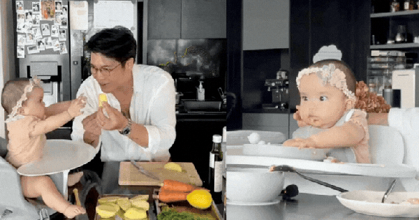 Đôi má phúng phính, ánh mắt háo hức của bé Gạo khiến người xem không khỏi bật cười vì quá đỗi dễ thương.