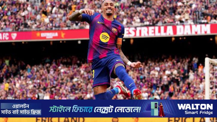 স্পেনের লিগ ফুটবলে রোববারের রাতটি যেন একাই নিজের করে নিলেন রাফিনিয়া। ব্রাজিলের এই আক্রমণভাগের তারকা দুর্দান্ত তিন গোল করে দলকে বড় জয়ের পথে নিয়ে গেলেন।
