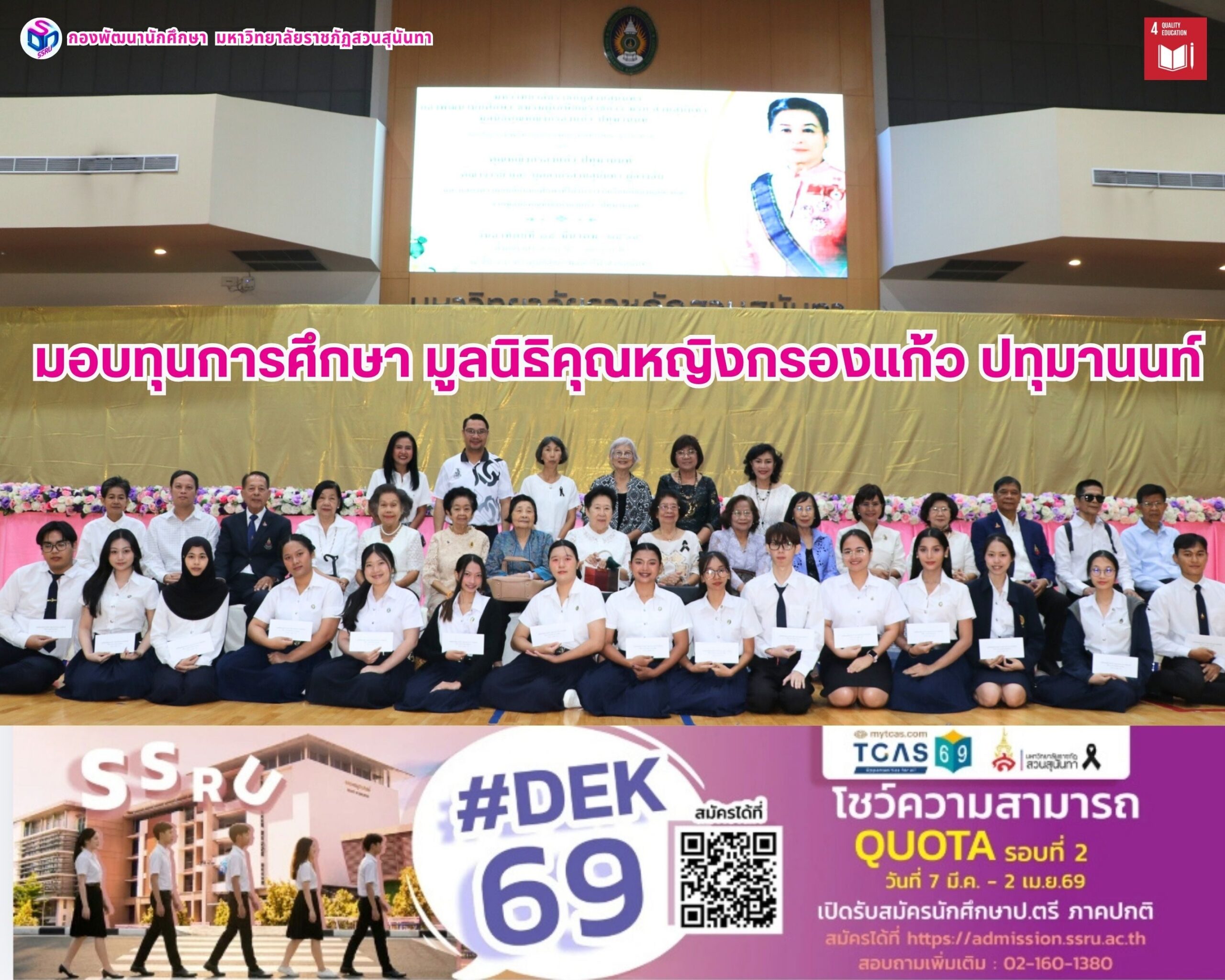 สวนสุนันทา มอบทุนการศึกษา มูลนิธิคุณหญิงกรองแก้ว ปทุมมานนท์