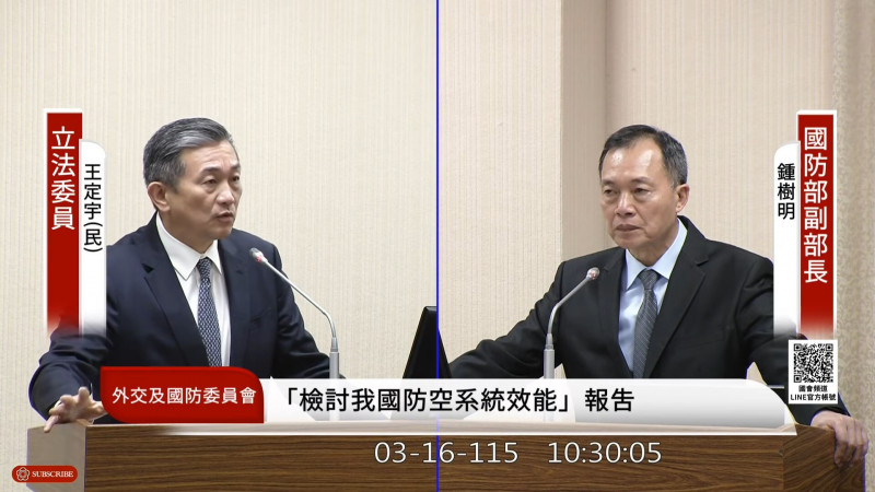 立法院外交及國防委員會今邀請國防部,就「借鏡近期美國與伊朗衝突,檢討我國防空反飛彈系統效能、低成本攔截手段及無人機反制能量」進行專報。立委王定宇提詢,借鑑美伊衝突,我國針對中共...…