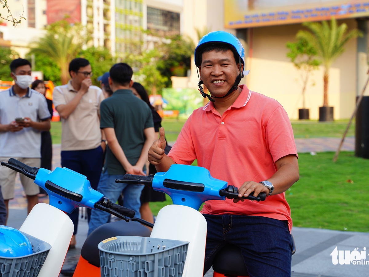 Residents in Ho Chi Minh City gravitated to Nguyen Hue Pedestrian Street on Sunday afternoon to try out newly launched public electric bicycles, which are offered free for 15 minutes per ride throughout March.