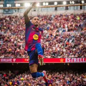 Raphinha slammed a treble as Barcelona crushed Sevilla 5-2 at the partially-rebuilt Camp Nou to restore their four-point lead at the top of La Liga on Sunday Details