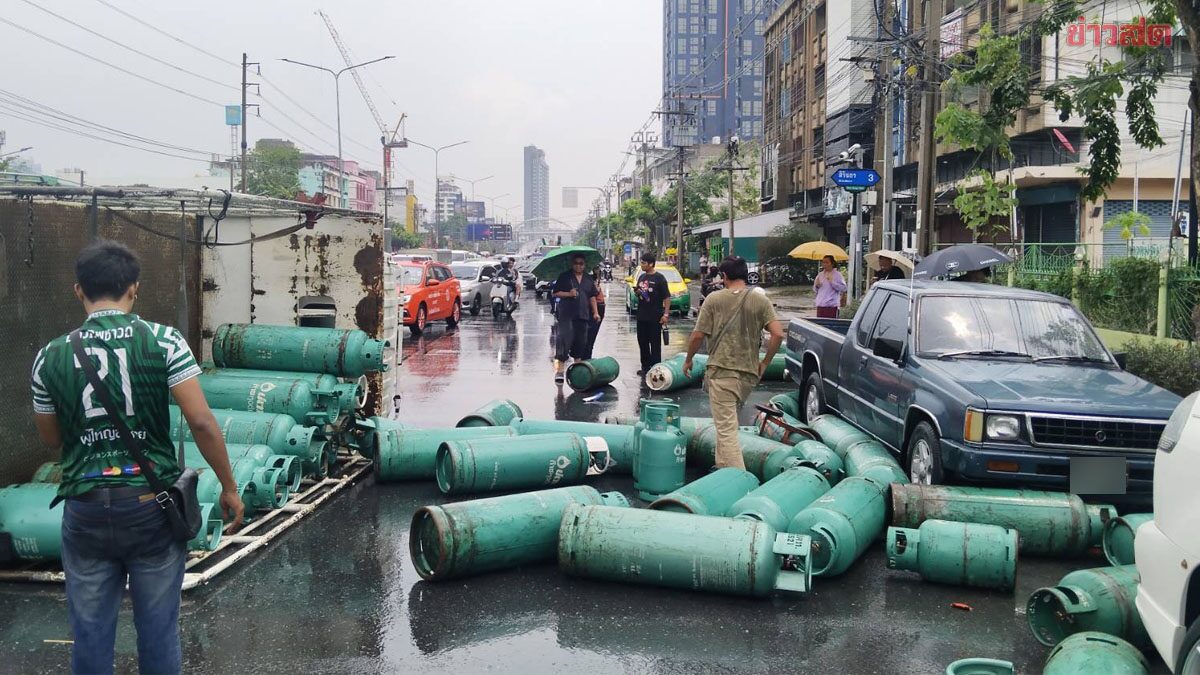 ระทึก! รถบรรทุกถังแก๊สพลิกคว่ำ เทกระจาดกลางถนนสิรินธร เบื้องต้นมีผู้บาดเจ็บ 1 ราย โชคดีเป็นถังแก๊สหุงต้มเปล่า จนท.เร่งเคลื่อนย้าย เมื่อเวลา 12.34 น. วันที่ 16 มี.ค.2569 ผู้สื่อข่าวรายงานว่า สายด่วน 199 รับแจ้งเหตุ รถบรรทุกถังแก๊สหุงต้ม พลิกคว่ำ บนถนนสิรินธร ใกล้ซอยสิรินธร 3 แขวงบางบำหรุ เขตบางพลัด กทม. เจ้าหน้าที่สถานีดับเพลิงและกู้ภัยบวรมงคล รุดตรวจสอบ ที่เกิดเหตุพบรถบรรทุก 4 ล้อ สภาพพลิกคว่ำตะแคง ทำให้ถังแก๊สเปล่า ขนาด 48 กิโลกรัม และ ขนาด 15 กิโลกรัม หล่นกระจายเกลื่อนกีดขวางช่องทางจราจร โดยไม่มีแสงเพลิง เบื้องต้นมีผู้บาดเจ็บ 1 รายเป็นเพศชาย จึงปิดทางจราจรชั่วคราวส่งผลให้รถยนต์ติดขัดเนื่องจากการจราจรรถวิ่งผ่านต้องชลอความเร็ว ขณะนี้เจ้าหน้าที่อยู่ระหว่างเร่งดำเนินการเคลื่อนย้ายถังแก๊สหุ้มต้มออกพ้นพื้นที่ ก่อนเปิดทางจราจรตามปกติ
