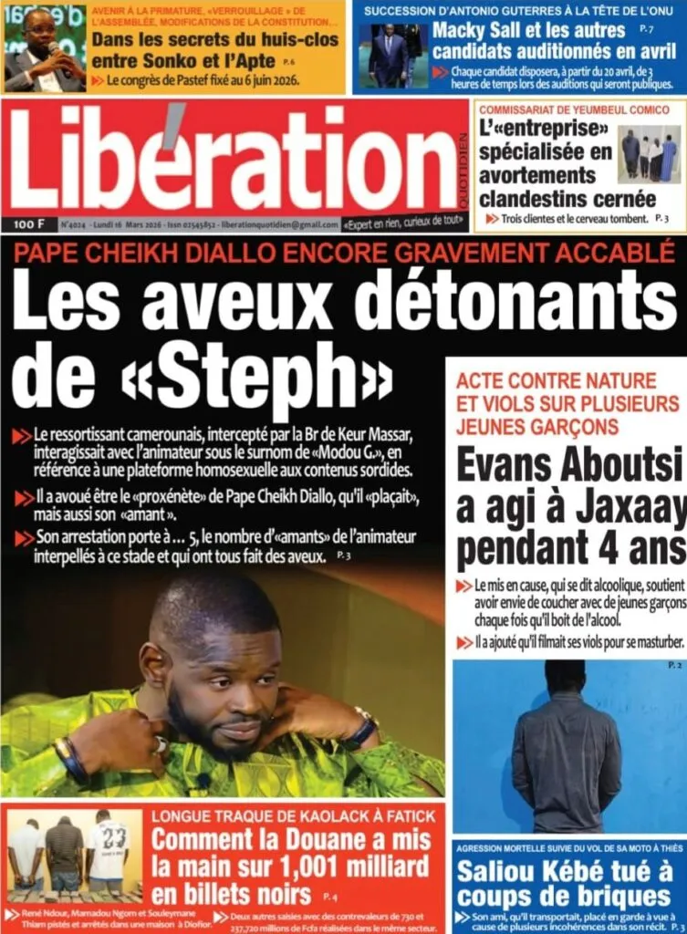 Découvrez les Unes des journaux sénégalais du lundi 16 mars 2026