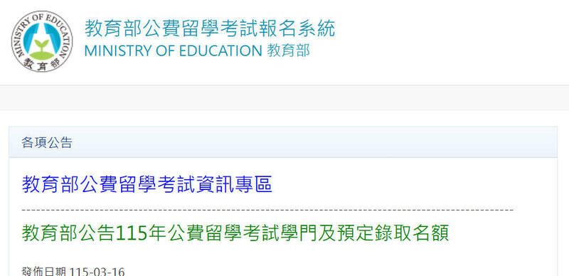 教育部今(16)日公布今(2026)年公費留學考試名額與新考選方式,今年預計錄取共201名公費生,並首度試辦5大信賴產業學門「先書面審查、後面試」的新制,未來將逐步取代傳統筆試...…