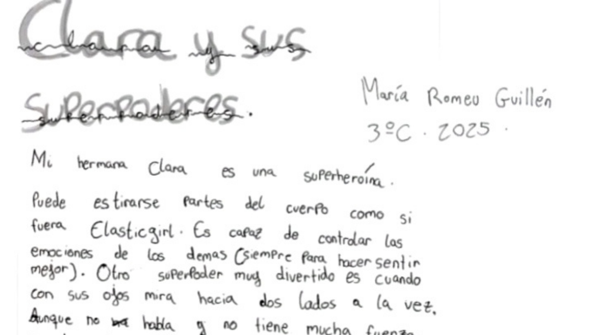 'Herrera en COPE' ha sido el escenario este lunes de una historia conmovedora después de recibir un correo electrónico de una oyente, Pilar Murgadas. En su mensaje, la abuela preguntaba si era el canal adecuado para compartir una carta escrita por su nieta María, de 8 años, y dirigida a su hermana pequeña, Clara, que nació con síndrome de Down. Pilar consideraba la carta una explicación "tan dulce, divertida, bonita y sencilla" que podría "ayudar a alguien a mirar sin dramatismos a las personas con estas características o superpoderes, como dice María". Con motivo del Día Mundial del Síndrome de Down, que se celebra el 21 de marzo, el programa compartió la misiva. La carta, escrita por María Romeu Guillén, estudiante de tercero de primaria, fue leída en el programa y describe a su hermana de una manera muy especial. La misiva comienza afirmando con rotundidad que "mi hermana Clara es una superheroína". Entre sus habilidades, María destaca que "puede estirarse partes del cuerpo como si fuera Elastic Girl" y, sobre todo, que es capaz de influir positivamente en el estado de ánimo de quienes la rodean. La pequeña escritora asegura que su hermana tiene la capacidad de "controlar las emociones de los demás, siempre para hacer sentir mejor". La descripción continúa con más detalles entrañables, como cuando "con sus ojos mira hacia los 2 lados a la vez", un superpoder que a María le parece "muy divertido". Además, advierte con cariño que, "aunque no habla y no tiene mucha fuerza, no te interesa enfadarla, porque tiene mucho carácter". María explica en su carta que la condición de su hermana no es algo de otro mundo, aunque pueda parecerlo. "Y aunque te parezca que esta historia es ciencia ficción, mi hermana Clara es real y hay muchos como ella", escribe. La autora revela el origen de estas capacidades especiales: "Todos tienen un cromosoma más que es la fuente de sus superpoderes". Hacia el final de la carta, María muestra una madurez y una sensibilidad asombrosas. Reconoce que "hay gente a la que les asusta o no les gusta, pero a mí me encanta", en referencia al síndrome de Down. Un sentimiento que comparte su abuela, Pilar, quien en su correo afirmó con rotundidad: "Clara no es solo un regalo. Clara es un premio". Desde el programa, María José Navarro agradeció a la abuela su gesto, confirmándole que, efectivamente, ese "era el canal" para compartir una historia tan inspiradora. Un broche de oro para una carta que ha emocionado a la audiencia de la radio.