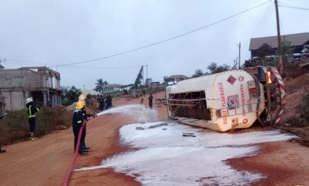 Personnel from the Ghana National Fire Service (GNFS) averted a potential fuel tanker explosion at Wassa Kwabeng in the Western Region after a tanker carrying thousands of litres of petrol overturned in the middle of the township. The incident occurred on the Asankrangwa–Sefwi Bekwai road when a DAF fuel tanker with registration number GT 1921-18, […]
