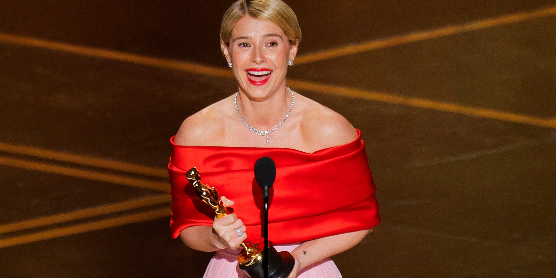 Ирландская актриса Джесси Бакли получила награду за лучшую женскую роль на церемонии вручения премии Оскар 2026 в роскошном образе, вдохновленном Грейс Келли.