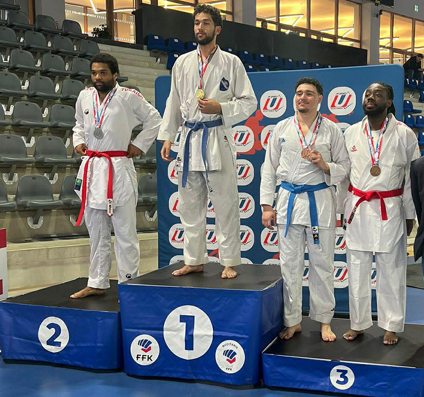 تُوّج لاعب المنتخب الوطني التونسي للكاراتي ونادي الحرس الوطني، أحمد بوبكر، بالميدالية البرونزية في اختصاص الكوميتي وزن +84 كغ، خلال منافسات بطولة فرنسا الجامعية للأكابر التي أقيمت يومي 14 و15 مارس 2026 بمدينة بيزييه. ويُعد بوبكر، الطالب المقيم بفرنسا، أصغر المتنافسين سنًا في وزنه ضمن فئة الآمال،