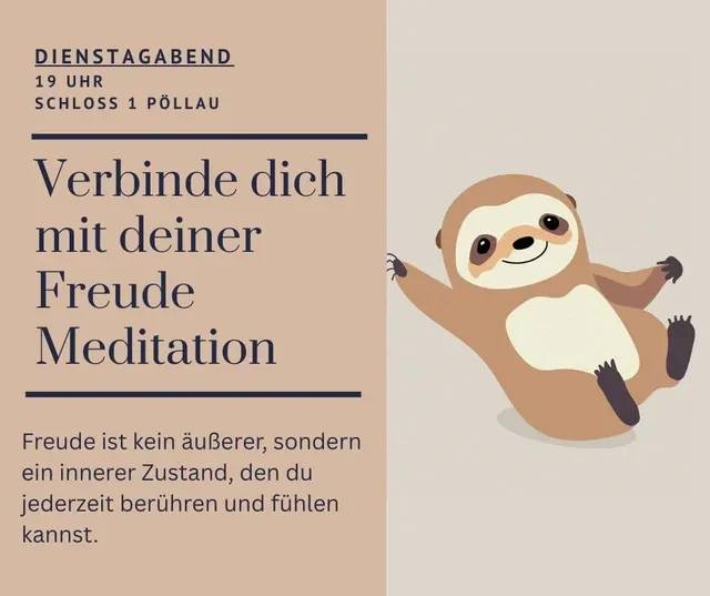 In Pöllau oder in der Nähe von Pöllau wohnhaft? Komme zur Dienstagsmeditation ins Schloss Pöllau. Das Thema der kommenden Dienstagsmeditation am 17. März um 19 Uhr ist die Verbindung zu deiner inneren Freude. Anmeldung: Verena Johanna Polzhofer Tel: 0677-6477-1171 Kosten: 15 Euro