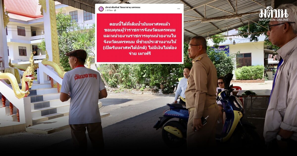 วัดมหาธาตุ นครพนม กลับมาเปิดเมรุได้แล้ว หลังผู้ว่าฯ เคลียร์ปั๊มให้เติมแกลลอนได้