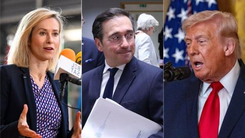 Una vez más, la Unión Europea está dispuesta a consentir los deseos de Donald Trump. El presidente de Estados Unidos trató este domingo de cargar en el Viejo Continente las consecuencias de su guerra en Irán, amenazando a sus socios de la OTAN con un "mal futuro" si no le ayudan a intervenir en el Estrecho de Ormuz, que ahora propone denominar "Estrecho de América", a pesar de que esta vía del Golfo Pérsico por la que pasa el 20% del petróleo a nivel mundial sigue amenazada por el régimen iraní. Ahora, los 27 parecen dispuestos a seguir a Trump a donde ordene, o así lo ha dejado entrever la alta representante comunitaria Kaja Kallas, una postura que España rechaza. La jefa de la diplomacia europea preside este lunes el Consejo de Asuntos Exteriores, la reunión de todos los ministros europeos de ese ramo. Antes, en el llamado doorstep donde hablan con los periodistas, Kallas ha dejado claro que está abierta a consentir los deseos de Trump, que este domingo reprochaba a Europa su ayuda en la guerra de Ucrania, después de que el republicano haya retirado parte del embargo al crudo de Rusia para paliar la subida del precio por la guerra en Oriente Próximo: "La rebaja de sanciones al petroleo ruso por parte de Estados Unidos es un precedente peligroso", ha dicho la estonia, "definitivamente tenemos que hacer más sobre eso". Repasando la agenda que ocupará este lunes a los 27, la vicepresidenta de la Comisión ha abordado la crisis de Ormuz: "Durante el fin de semana he hablado con el secretario general de la ONU, Antonio Guterres, sobre si es posible una iniciativa similar a la que hicimos en el Mar Negro para sacar el grano de Ucrania", asegura. Kallas ha abierto la puerta también a articular una misión europea en el Golfo Pérsico, que es justo lo que pide Trump: "El principal asunto será cómo mantener abierto el Estrecho", ha dicho. Kallas ha mencionado la Operación 'Aspides', que se lanzó en 2024 para proteger a los barcos comerciales en el mar Rojo de los ataques de los rebeldes hutíes de Yemen, una de las milicias que respalda Irán en Oriente Próximo. "Discutiremos con los estados miembros si es posible cambiar el mandato de esta misión", dice, "si queremos tener seguridad en esta región sería utilizar la operación que ya tenemos allí, y quizás cambiarla un poco". La diplomática abre también la puerta a invocar a la 'Coalición de Voluntarios', que integran 35 países y que ya se reunió para prevenir una intervención en Ucrania: "Necesitamos ver cuál puede ser la vía más rápida para conseguir la apertura del Estrecho de Ormuz, pero como podéis ver no es facil", ha concluido. EU foreign ministers are gathering today, 16 March, for the Foreign Affairs Council meeting to discuss Ukraine, the situation in the Middle East and relations with the Southern Neighbourhood. Watch HR/VP @kajakallas doorstep ahead of today's meeting: https://t.co/NeyTMsxz63 — European External Action Service - EEAS ...