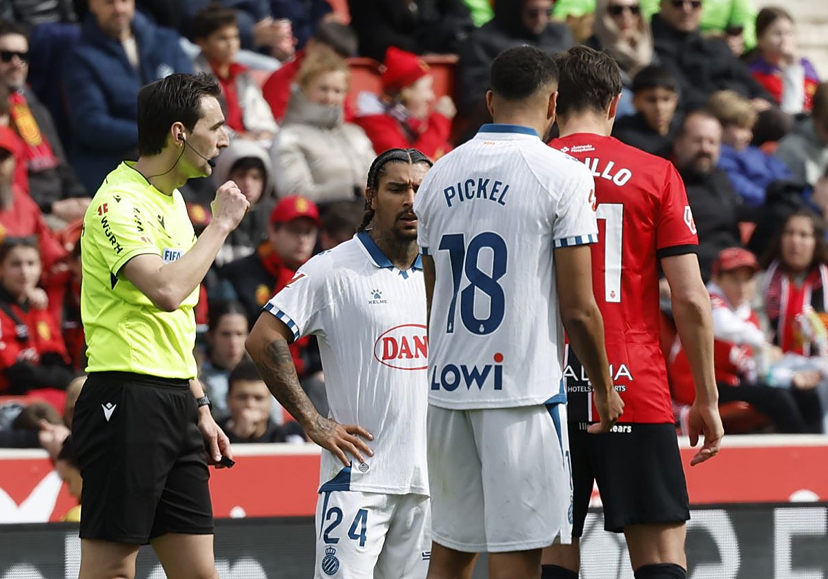 La jornada 28 de Primera división tuvo en el Mallorca - Espanyol una de las jugadas más controvertidas y una decisión arbitral que todavía da vueltas entre los aficionados. Aunque hubo más jugadas en las que la intervención arbitral fue decisiva, como ese penalti que pidió el Bernabéu sobre Fran García o la imagen del fin de semana, con la roja a Adqar por tocar los genitales a Sorloth en el Atlético - Getafe . En general, entre la pericia de los árbitros y la ayuda del VAR, fue una jornada con más aciertos que errores y poca polémica más allá de esa acción de Samu Costa sobre Urko en la que muchos vieron una patada clara, y de la que De Burgos tuvo dudas incluso con varios minutos de pausa para revisar las imágenes. Fue la única nota negativa y que significó además, que el Mallorca se quedara con los tres puntos del triunfo sobre el Espanyol, cuya afición todavía observa la jugada y no entiende por qué no se pitó esa falta previa. Estas fueron las jugadas más polémicas de la jornada 28 en la Liga: Atleti- Getafe Min 52 : Tras llamada y revisión del Var, muestran tarjeta roja a Adqar por pellizcar-tocar las partes nobles de Sorloth. El colegiado acierta con la decisión. Después, el jugador del Atlético de Madrid le agarra del brazo al adversario, y se lo quita de encima con dureza. Le muestran amarilla, que es una elección correcta, pero el jugador rojiblanco se jugó la roja por emplear fuerza excesiva. Min 59: Agarran a Sorloth y este, al intentar quitarse al rival, le da en la cara. Se juega la segunda amarilla. Es un acto de provocación clara ya que lo hace de forma voluntaria, y el balón no está en esa zona. Min 68: Vargas hace una entrada a Milla por la que piden roja. Ortiz Arias le muestra amarilla y acierta. Es verdad que es una entrada fuerte, pero creo que está más cerca de la amarilla que de la roja. Real Madrid - Elche Min 24: Hay una caída de Fran García en el área del Elche. Se pide penalti por empujón por detrás, pero la verdad es que es una disputa de balón. Gil Manzano no pita nada y hace bien. Min 41: Tchouaméni se dispone a tirar a portería y un defensor trata de impedirlo. El jugador del Madrid se queja de que lo han golpeado y Gil Manzano dice que no hay nada. No es penalti. Acierta el colegiado. Mallorca - Espanyol Min 59: Pablo Torre anota el primer gol del Mallorca. Para mí hay una falta previa de Samu Costa sobre un jugador del Espanyol, ya que en la disputa le golpea en la pierna. «Richy, observamos que el defensor pone el pie encima del balón y Samuel Costa le pega una patada», le indican los compañeros del VAR. Pero después de pedir y que le muestren todas las imágenes posibles y desde todos los ángulos grabados, la respuesta de De Burgos es firme: «Es que no veo claramente que él golpee al talón. Chicos, yo con estas imágenes no lo tengo claro, voy a mantener el gol». Min 53: Entrada de Pickek con los tacos al tobillo de Mascarel . De Burgos muestra amarilla, pero el VAR lo llama y, al ver la repetición, lo expulsa. Barcelona - Sevilla Min 7: Penalti sancionado por empujón y derribo de Sow sobre Cancelo. Bien decidido porque es un derribo por detrás: es claro. Min 18: Penalti por mano Carmona. También acertada la decisión. Al principio la mano está apoyada en el suelo, pero, luego, al intentar defender el tiro del rival, lo estira e impacta en el balón.