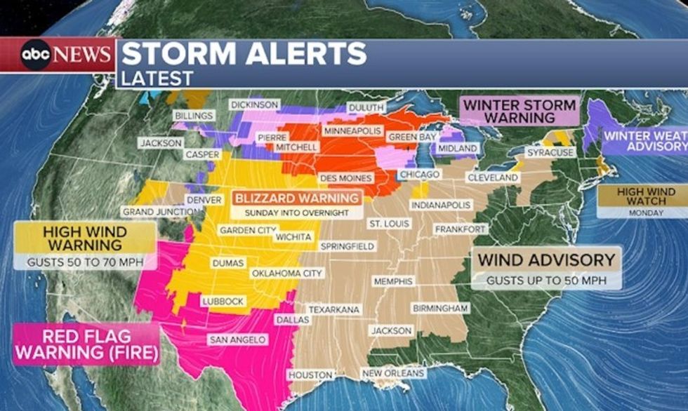 Më shumë se 100 milionë njerëz në SHBA janë nën alarme për mot të ashpër, pasi një sistem i fuqishëm stuhish me borë të madhe dhe erëra të forta kërcënon rajonet e Midwest-it të Epërm dhe Liqeneve të Mëdha. Sistemi pritet të rrisë rrezikun e zjarreve në të gjithë SHBA-në qendrore, duke sjellë shi, stuhi dhe borë në pjesë të verilindjes. Deri të hënën në mbrëmje, në një zonë të gjerë nga Dakota deri në veri të shtetit të New Yorkut pritet të ketë reshje bore ndërsa shtesa e saj të arrijë nga 7-15 centimetra. Kushtet e thata dhe me erë në jug pritet të përkeqësojnë kërcënimet e zjarreve në pyje, veçanërisht në zonat që tashmë luftojnë me zjarre të mëdha në shtetin e Nebraskës. Ndërsa sistemi lëviz në lindje deri të hënën, ai mund të sjellë shi, stuhi dhe erëra të forta në pjesë të verilindjes, sipas raportit. /AA/