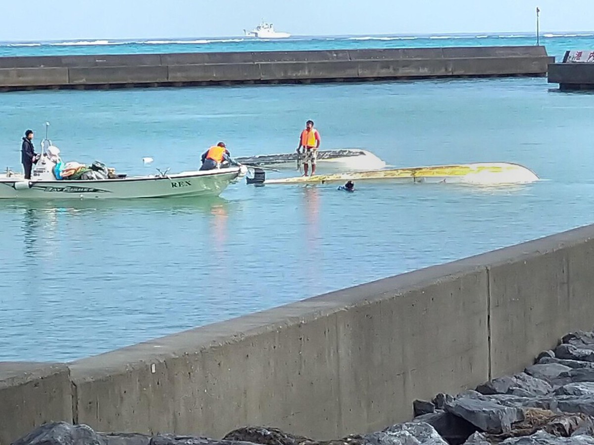 NAHA, OKINAWA PREF. -- Two ships capsized on Monday off the Henoko district of Nago, Okinawa Prefecture, southernmost Japan, leaving two people dead and two others injured.