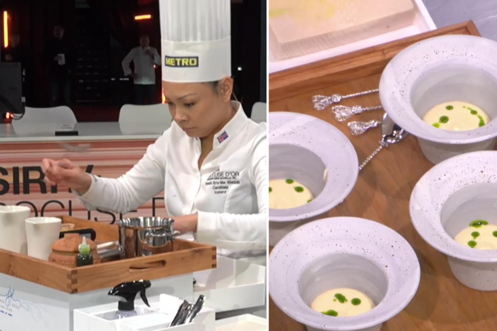 Snædís Xyza Mae Jónsdóttir sýndi mikið öryggi og fagmennsku þegar hún steig á svið í svokölluðum „On Stage“-hluta Bocuse d’Or Europe keppninnar nú rétt í þessu.
