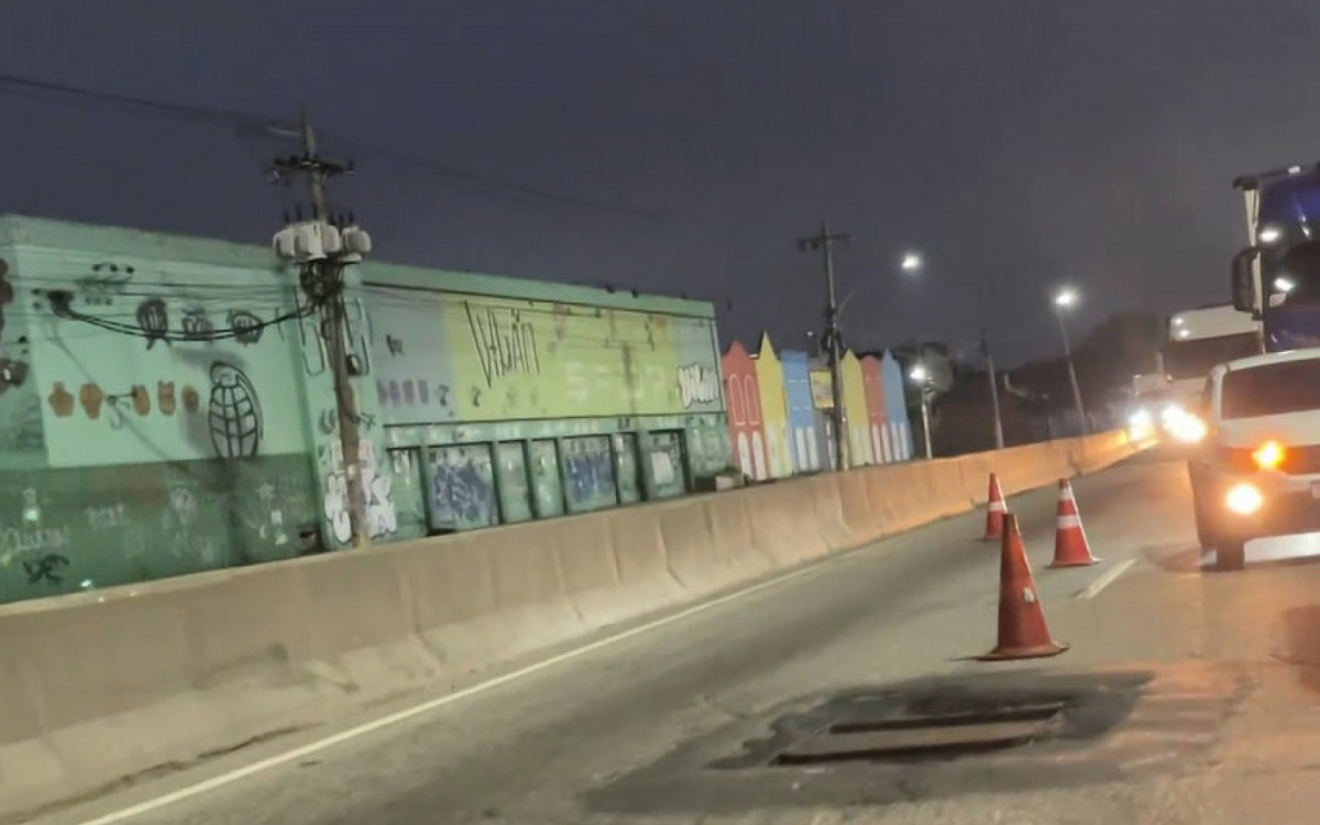 Problema aconteceu em Vigário Geral, na pista central no sentido Zona Oeste, onde uma faixa está interditada