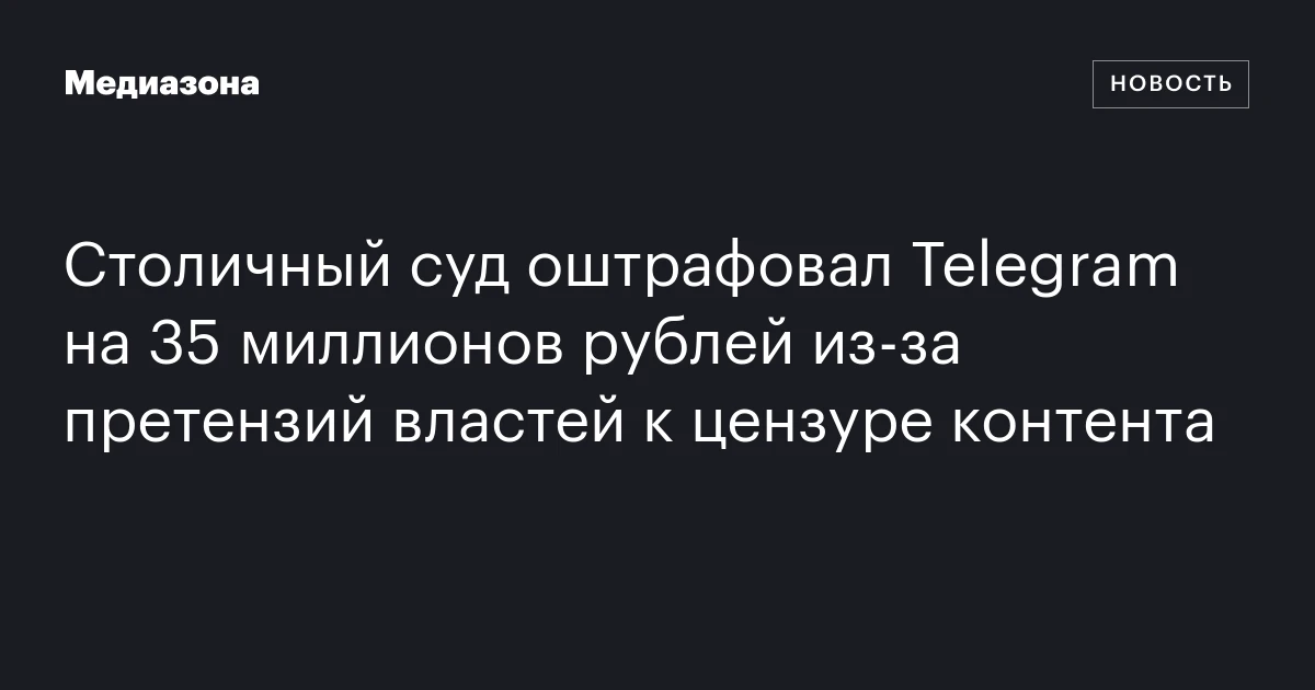 Столичный суд оштрафовал Telegram на 35 миллионов рублей из‑за претензий властей к цензуре контента