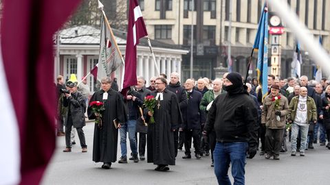 FOTO ⟩ Leģionāru piemiņas gājienā Rīgā devušies vairāki simti. Īpašu uzmanību piesaista bijušais leģionārs
