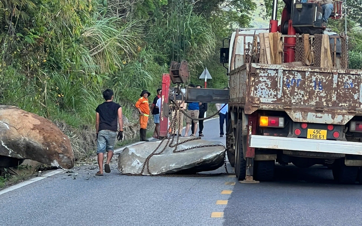 Tác động để khối đá lớn rơi xuống đường đèo Bảo Lộc tránh xảy ra tai nạn