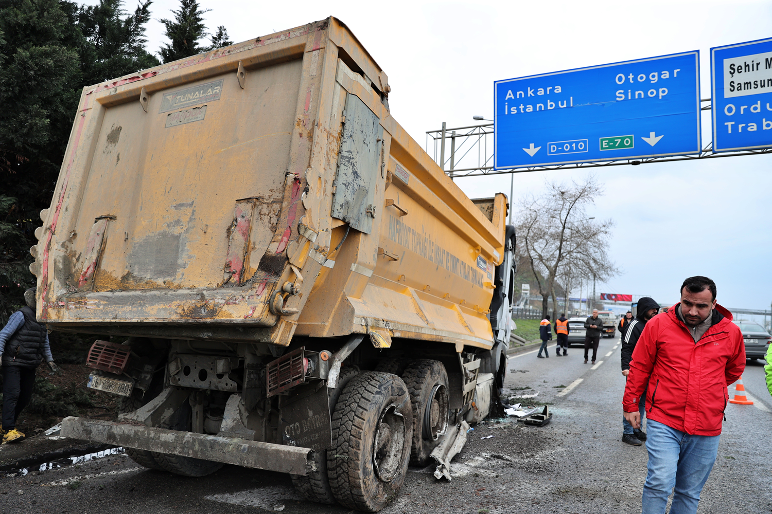 Samsun'un Canik ilçesinde devrilen hafriyat kamyonu, Ordu-Samsun kara yolunda ulaşımın aksamasına neden oldu.