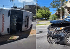 Um acidente entre uma ambulância e um carro deixou oito pessoas feridas na tarde de sábado em São Bernardo do Campo, na Grande São Paulo.
