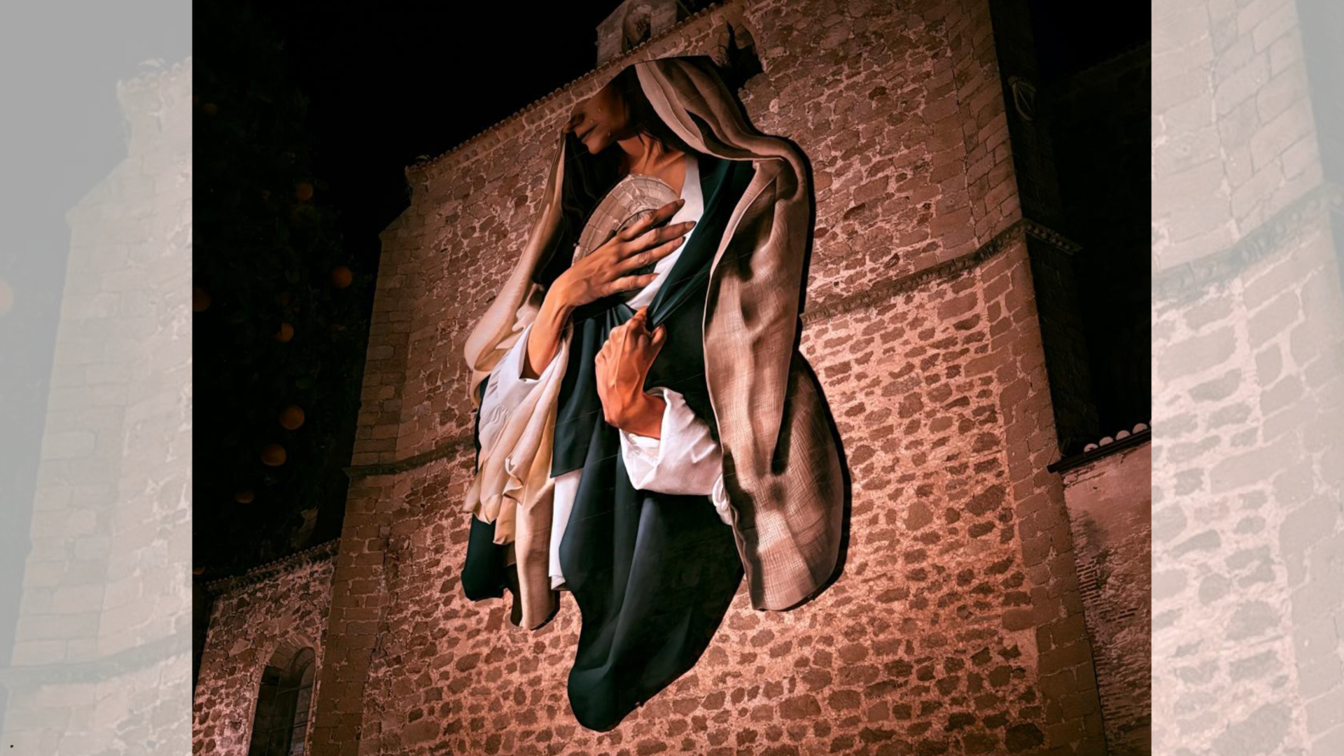Plasencia ha presentado el monumental mural que servirá como cartel para su Semana Santa, la primera que celebra con la distinción de Fiesta de Interés Turístico Nacional. La obra, creada por el artista placentino Jesús Mateos Brea, representa a una Virgen Dolorosa en un imponente formato de 18 metros de alto por 9 de ancho y ya se exhibe en el entorno de la iglesia de Santo Domingo. La concejala de Turismo, Belinda Martín, ha expresado su satisfacción con el resultado, que ha calificado como "algo grandioso". Martín ha destacado que el mural mezcla "la vanguardia con, por supuesto, el respeto de estas fechas", y ha agradecido al artista y a todo el equipo su trabajo para finalizar la obra en un "plazo récord" a pesar de las inclemencias meteorológicas. El propio artista, Jesús Mateos Brea, ha explicado que la idea partió de "una especie de agradecimiento o una celebración" por el reconocimiento a la Semana Santa. El mural se ubica en el lugar desde el que parten y se recogen las procesiones, un detalle clave para Brea: "Quería que este trabajo fuera algo que acompañase a todas las cofradías y a todos los placentinos que vieran salir y recoger a las procesiones". La obra se centra en el pecho y las manos de la Virgen, renunciando a un rostro completo. "Mi idea siempre ha sido centrarme más en las manos y en el pecho", ha afirmado Brea. Una mano se agarra con fuerza, simbolizando el dolor del calvario, mientras que la otra, más sosegada, representa la Resurrección. Además, el mural integra una ventana del edificio, que simboliza el corazón de María, del que emana luz. El obispo de Plasencia, Don Ernesto Brotons, ha celebrado la capacidad del artista para "unir el arte urbano con lo que es el sentimiento más profundo y la identidad también más profunda de la Semana Santa". Para el obispo, la obra no se recrea en la muerte, sino que "es palabra de vida con mayúscula y de resurrección", un misterio de amor que acompaña a los creyentes. El mural, compuesto por 47 piezas y con un peso de solo 250 kilos, ha supuesto un gran desafío técnico. Brea ha descrito la complejidad de la instalación, especialmente por el viento. "Esto no se hace en ningún sitio, realmente, es que esto nos lo estamos inventando", ha confesado sobre un proceso que ha calificado de "enorme tensión". La obra permanecerá instalada hasta poco antes de la feria. A pesar del éxito y del interés que despierta su técnica, Brea se muestra selectivo con sus proyectos. "Para hacer este tipo de trabajos, tiene sentido porque están en mi casa", ha asegurado, distanciándose de comparaciones con grandes maestros clásicos y defendiendo una creación artística humilde y con un profundo sentido personal.