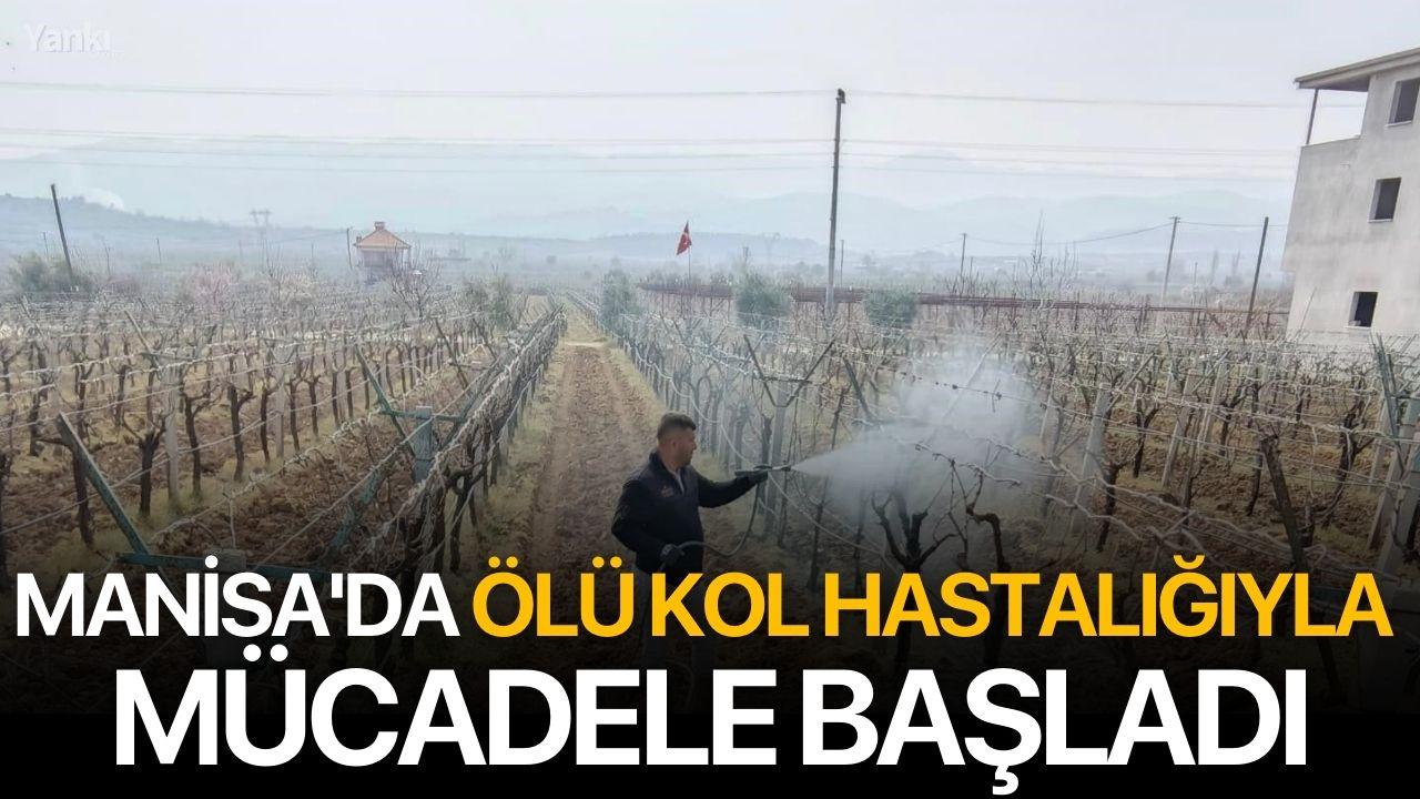 Manisa’nın Sarıgöl ilçesinde üzüm bağlarında görülen "ölü kol" hastalığına karşı üreticiler ilaçlama çalışmalarına başladı. Özellikle son günlerde etkili olan yağışlı hava nedeniyle bağlarda hastalık riskinin arttığını belirten üreticiler, İlçe Tarım ve Orman Müdürlüğü’nün uyarıları doğrultusunda önlem alıyor.