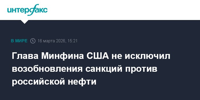 Глава Минфина США не исключил возобновления санкций против российской нефти