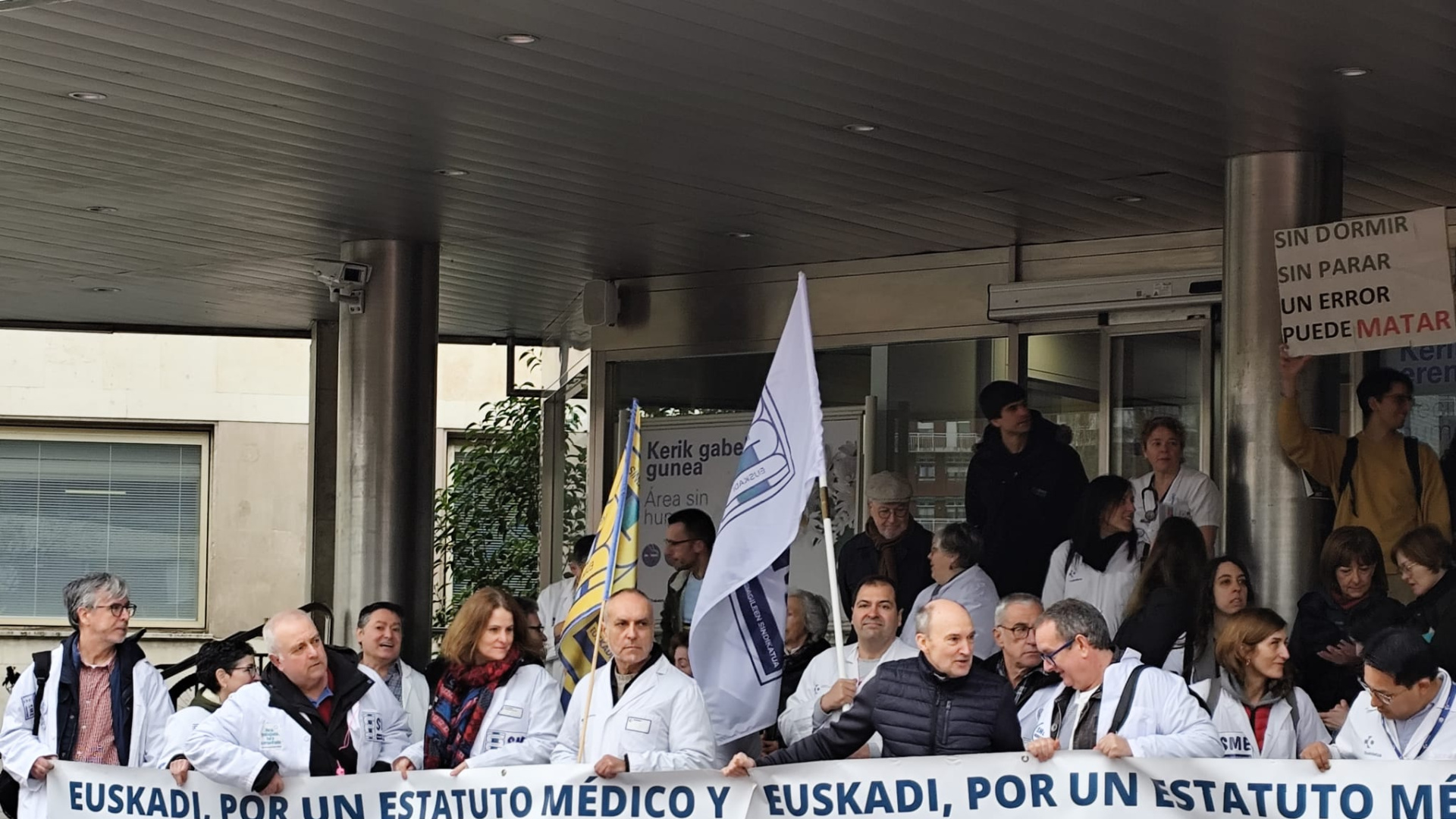 Los médicos mantienen el pulso en la segunda semana de huelga de este año con el ánimo intacto y la determinación de cambiar sus condiciones laborales. Lo asegura Néstor Morchón, médico de Urgencias en el Hospital Universitario de Álava (HUA), donde el colectivo se ha concentrado esta mañana esgrimiendo carteles que rezaban "Sin dormir, sin parar, un error puede matar". El también vicepresidente del Sindicato Médico de Euskadi (SME), denuncia que solo tienen noticias del Ministerio de Sanidad a través de los medios de comunicación y "demonizados" por el Gobierno, y aseguran que seguirán con las movilizaciones todas las semanas que haga falta hasta que se atiendan sus reivindicaciones. El personal médico y facultativo de Euskadi ha comenzado este lunes una nueva semana de huelga, la segunda de este año. La protesta tiene como objetivo mostrar su rechazo al Estatuto Marco acordado entre el Ministerio de Sanidad y varios sindicatos, y reclamar un texto propio que reconozca las particularidades de su colectivo profesiona Una de las principales quejas es la sobrecarga asistencial a la que se ven sometidos, que según denuncian, les impide atender bien a los pacientes. "Esta sobrecarga a la que nos vemos, estas estas jornadas, esta carga, no podemos atender bien a los pacientes", lamenta un portavoz, quien advierte que esta situación repercute en la seguridad del paciente al aumentar el riesgo de olvidos y errores en la praxis diaria. Para poder negociar sus singularidades, los médicos creen indispensable contar con un estatuto médico propio. Argumentan que son un colectivo minoritario dentro del Servicio Nacional de Salud y que, sin esta herramienta, su voz no se tiene en cuenta. "Creemos que la única manera de poder que se nos escuche y poder negociar todas estas cosas es con un estatuto médico propio", afirman. Desde el Sindicato Médico de Euskadi han explicado que el personal afronta con ["fuerzas y ganas"] este nuevo ciclo de paros. Durante la mañana de este lunes se han realizado concentraciones en los hospitales de Txagorritxu y Cruces, y por la tarde se han convocado manifestaciones en las tres capitales vascas. El punto más conflictivo es el de las guardias. A diferencia de otros trabajadores, cuando los médicos superan su jornada ordinaria, se les aplica una jornada complementaria que es obligatoria y se remunera a un precio inferior. "Se podría decir que se trabaja más y se cobra menos", resumen desde el colectivo, una situación que califican de incomprensible fuera del sector. La reivindicación es clara: eliminar progresivamente este modelo para implantar una jornada extraordinaria voluntaria y remunerada adecuadamente, como ocurre en el resto de profesiones. "No pedimos nada que no que no tengan el resto de los trabajadores", concluyen, subrayando que la regulación actual es una norma estatal que afecta a todas las comunidades autónomas. El comité de huelga, formado por seis sindicatos médicos, ha señalado que no se han producido ["contactos formales"] con el ministerio desde los paros de febrero. De este modo, los sindicatos médicos retoman las movilizaciones para exigir un texto que reconozca ["las especiales condiciones de formación, desempeño y responsabilidad"] del colectivo. El Ministerio de Sanidad rechaza esta petición al considerar que una norma específica ["rompería la cohesión y generaría desigualdades"] en el Sistema Nacional de Salud (SNS).