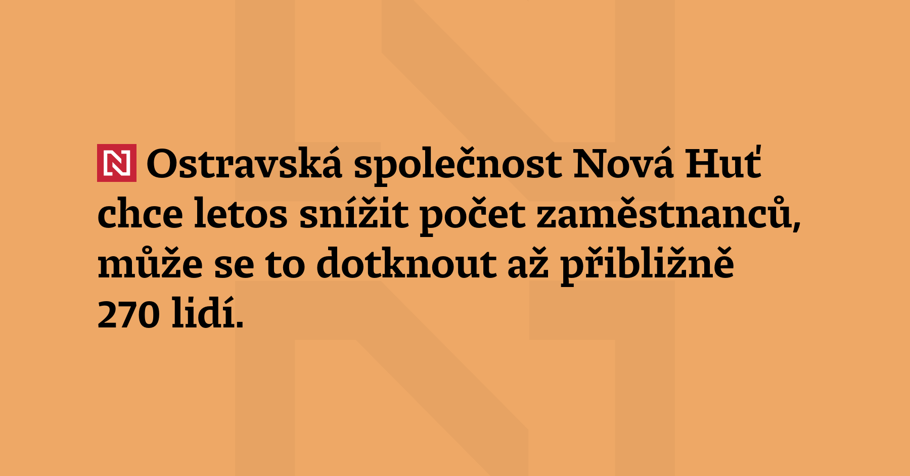 Ostravská společnost Nová Huť chce letos snížit počet zaměstnanců, může se to dotknout až přibližně 270 lidí. Řekl to mluvčí firmy Ivo Štěrba. Odborový předák Petr Slanina uvedl, že se odbory obávají toho, že by se v takovém případě musel některý z provozů odstavit. Na chystané propouštění upozornila Česká televize. Podnik v minulých letech byl v insolvenčním řízení, propustil více […]