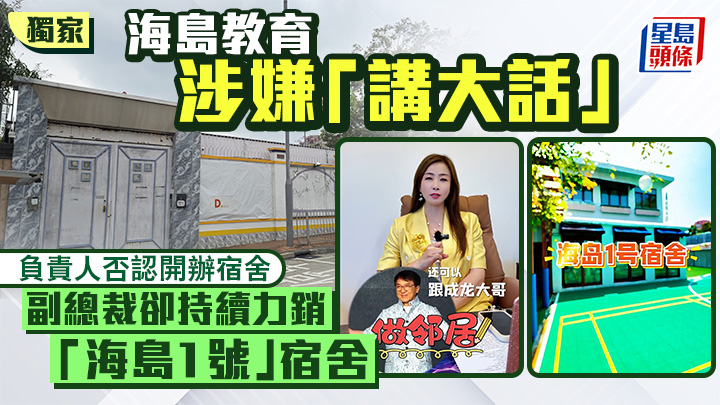 本報日前獨家報道,約道14號的前幼稚園校舍疑被機構租用為「全託型學生宿舍」。涉事的「海島教育」負責人否認開辦宿舍,更聲稱有員工與「網紅」擅自發布開辦宿舍的帖文與短片,已解僱涉事員工及要求網上平台下架。記者跟進調查發現,「海島教育」在內地一直力銷「海島1號」宿舍,副總裁楊蕙溪兩度拍片推介,上月有短片顯示她形容「海島1號」是「中學式管理、大學式氛圍、家庭式關懷」的宿舍,與創始人蔡讚揚日前說法大相逕庭。