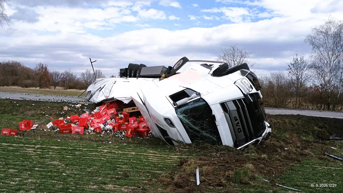 Kamion převážející basy piva se převrátil v pondělí odpoledne na silnici I/20 u obce Sedlec na Českobudějovicku, tedy na hlavním tahu z Českých Budějovic na Písek. Řidič nákladního auta nezvládl řízení a sjel do příkopu. Při nehodě se zranil a skončil v péči záchranářů. Silnice je v místě nehody uzavřená, řidiči musí po objízdných trasách.