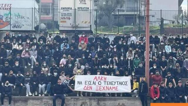 Συγκλονιστική εικόνα: Ο Κλεομένης κρατούσε το πανό για τον Άλκη ως μαθητής στο Γυμνάσιο Συκεών