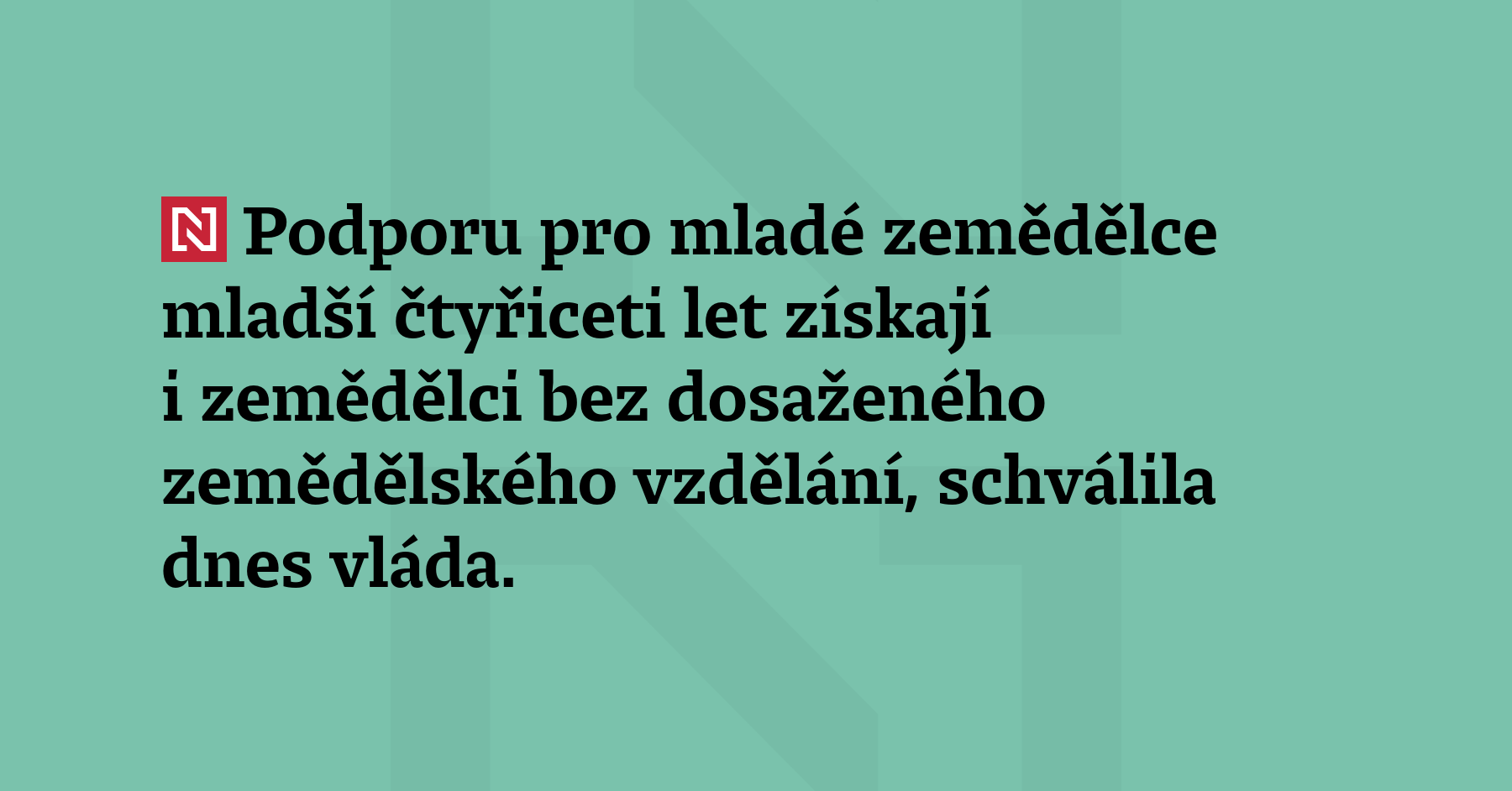 Podporu pro mladé zemědělce mladší čtyřiceti let získají i zemědělci bez dosaženého zemědělského vzdělání, schválila dnes vláda. Nově bude stačit dvouletá praxe v zemědělském podniku. (ČT24)
