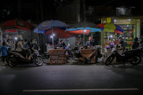 Foto: Kesibukan Penjahit Tengah Malam Pinggir Jalan Kemayoran