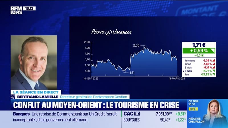 Ce lundi 16 mars, Bertrand Lamielle, directeur général de Portzamparc Gestion, s'est penché sur la poursuite de l'envolée boursière de Soitec, le prolongement de la licence Dolce&Gabbana pour EssilorLuxottica, l'éventualité pour Pierre et Vacances de profiter de la crise du tourisme international avec le conflit en Moyen-Orient, ainsi que le secteur de l'immobilier en tant que victime de la tension sur les taux, dans l'émission BFM Bourse présentée par Guillaume Sommerer. BFM Bourse est à voir ou écouter du lundi au vendredi sur BFM Business.