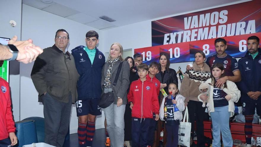 Hay pocas fuerzas tan poderosas como las que pueden unir las familias. Y eso, en el Extremadura, lo quieren llevar a raja tabla. Antes del partido ante el Águilas y antes de que el ‘Zarfinazo’ pusiera en ebullición al Francisco de la Hera, al técnico David Rocha se le ocurrió una de esas ideas que terminan tocando la fibra a cualquiera. Nada más terminar el calentamiento durante el partido ante el Águilas de este pasado domingo, sabiendo de la importancia que el envite tenía para todos, el míster decidió que familiares de todos los jugadores asaltaran el vestuario a unos minutos de iniciarse el partido y se fundieran en una piña con sus seres queridos. «Chicos, hoy tenemos refuerzos. Y son muy importantes» gritó David Rocha. Y empezaron a entrar a cuentagotas familiares de todos los jugadores. A Zarfino se le vio emocionado. Igual que a Juanmi Callejón, al que le tembló la voz al dar el discurso definitivo antes de que todos se fundieran en un abrazo que el propio Extremadura ha descubierto en un vídeo subido a redes sociales. Una imagen espectacular que muestra la fortaleza de una familia.