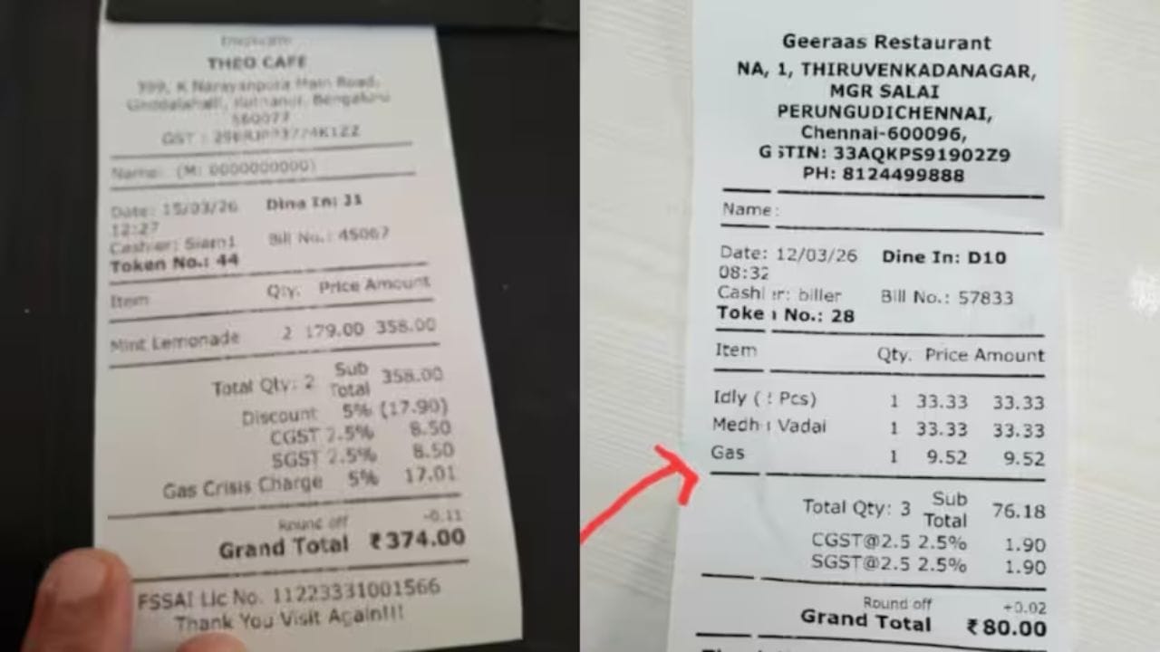 इराण युद्धाचा फटका एलपीजी तुटवड्याच्या स्वरुपात समोर आला आहे. त्यामुळे आता अनेक हॉटेलांना टाळे लागले आहे. तर काही पदार्थ हॉटेलच्या मेन्यूत गायब झाले आहेत. तर काही हॉटेलातील अन्नपदार्थांच्या बिलात थेट 'गॅस क्रायसिस' चार्जचा समावेश केला आहे.