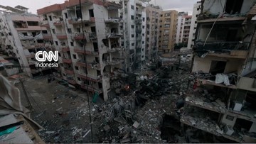 Kerusakan parah pada bangunan dan sejumlah fasilitas warga di selatan Beirut terlihat setelah serangan Israel semalaman.