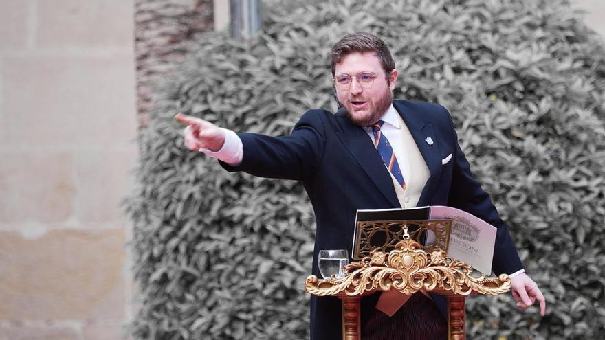 Crevillent abrió en la tarde del sábado la Semana Santa 2026 con uno de los actos más esperados del calendario cofrade: el Pregón oficial, que este año estrenó como principal novedad su celebración en horario vespertino. La cita arrancó a las 18 horas en la plaza de la Constitución, convertida de nuevo en escenario central del inicio pasional, engalanada para la ocasión con reposteros y gallardetes carmesíes confeccionados por las voluntarias del taller de costura de la Federación de Cofradías y Hermandades. En ese marco, de gran carga estética y simbólica, el historiador del arte, comunicador y exaltador Joaquín Bernal Ganga, natural de La Alberca de las Torres (Murcia), fue el encargado de anunciar la llegada de la celebración crevillentina ante cerca de quinientos asistentes.