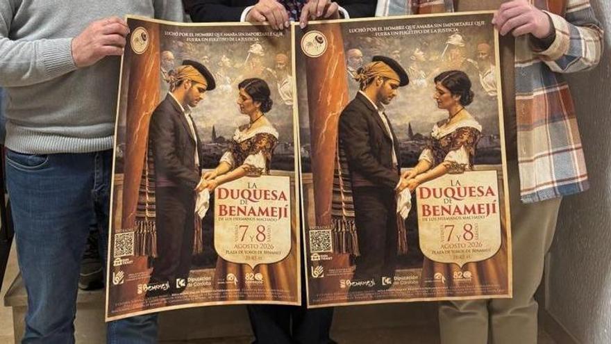 La Duquesa de Benamejí vuelve a escena. El Ayuntamiento de Benamejí ha presentado este lunes el cartel oficial de la edición 2026 del macroespectáculo La Duquesa de Benamejí, una de las grandes citas culturales y turísticas del verano en la Subbética cordobesa. La representación, basada en la célebre obra de los hermanos Antonio y Manuel Machado, volverá a convertir la plaza de toros del municipio en un gran escenario al aire libre los próximos 7 y 8 de agosto a las 21:45 horas, con la participación de más de 150 artistas del tejido cultural benamejicense.