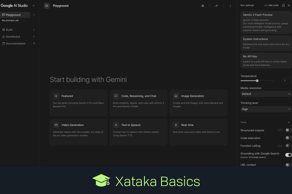 Vamos a explicarte qué es y qué puedes hacer con Google AI Studio , la suite de creación con inteligencia artificial de Google. Es una página web dirigida a todo tipos de usuarios, desde expertos de inteligencia artificial hasta curiosos, para poder crear cosas con la IA de Google de forma más flexible que con Gemini . Vamos a empezar el artículo explicándote qué es exactamente esta herramienta y en qué se diferencia del chat de Gemini . Luego te diremos lo que vas a poder hacer con ella una vez entres a su web oficial, que es aistudio.google.com . Qué es Google AI Studio Google AI Studio es una especie de laboratorio de inteligencia artificial de Google. Es una herramienta web que puedes utilizar en cualquier dispositivo a través de tu navegador web, con la que vas a poder crear aplicaciones, prototipos, o código funcional a partir de tus peticiones. Tú le dices lo que quieres, y la inteligencia artificial te ayudará a crearlo. Por lo tanto, es como un entorno para desarrolladores con el SDK de Gemini, pero con una interfaz sencilla para que cualquier usuario pueda utilizarlo. Es como tener el motor de Gemini a la vista y con todos los mandos al descubierto para que puedas ajustar, experimentar y construir cosas propias, eligiendo entre varios modelso de inteligencia artificial a utilizar. Para que lo entiendas, el chat de Gemini es como un ordenador cerrado, un producto ya finalizado. Tú le pides lo que quieres, y el chat decide qué modelo utilizar, te genera un resultado a tu petición basándose en cómo ha sido configurado para funcionar. Mientras, Google AI Studio es como un ordenador abierto al que puedes cambiar las piezas. Puedes elegir el modelo a usar, y tienes un control total sobre su comportamiento sin filtros de personalidad ni nada por el estilo. Tú puedes ajustar cómo responde, subir todo tipo de archivos como punto de partida, o incluso crear tu propio Gemini adaptado a lo que quieras sin saber programar. Por lo tanto, es como un lienzo en blanco donde puedes darle forma a cualquier idea que necesite inteligencia artificial. ¿Quieres crear una aplicación o herramienta web? Aquí vas a poderlo hacer de una manera mucho más versátil que con Gemini normal. ¿Quieres crear código? Pues también lo puedes hacer, aunque si prefieres un entorno para desarrollar webs más clásico también tienes la herramienta Antigravity de Google. En Xataka Cómo programar un resumen diario de tus nuevas newsletters enviado por inteligencia artificial a tu correo electrónico Qué puedes hacer con Google AI Studio Para empezar, con este portal puedes hablar con Gemini teniendo un mayor control sobre la IA. Puedes ir a la sección Playground y simplemente usar Gemini ajusstando cómo responde, su tono, cuánto se extiende en sus respuestas, etcétera. Vamos, puedes hacerte un Gemini personalizado. Una de sus principales funciones es la de crear aaplicaciones sin escribir código , en solo unos minutos y sin saber programar. Sólo tienes que describir la aplicación que quieras y Gemini la construirá. Además, vas a poder acceder a la API gratuita de Gemini , y crear varias para proyectos dentro de esta herramienta o en otras herramientas de terceros donde quieras vincular la IA. También puedes generar imágenes y vídeos . Ten en cuenta que entre los muchos modelos de Google disponibles están Nano Banana y Veo, o sea que podrás acceder directamente a ellos. En Xataka Cómo crear tu curriculum a partir de tu perfil de LinkedIn y guardarlo directamente en Drive usando inteligencia artificial También puedes analizar documentos, imágenes y vídeos subiendo archivos de todo tipo, desde fotos hasta PDFs. Además, puedes analizar el conbtenido de páginas web con solo pegarle la URL y pedirle lo que quieres. Otra función es que puedes crear tu propio asistente o chatbot personalizado , creando herramientas prácticas y específicas para un uso personal. Pueden ser herramientas para practicar idiomas, apps para organizar fotos, lo que necesites. También puedes escribir y depurar código . Podrás pedir con lenguaje natural lo que quieres conseguir, y Gemini creará el código necesario para ello. Además, puedes acceder a los modelos más recientes creados por Google. En Xataka Basics | Las mejores aplicaciones para tener una inteligencia artificial local en tu móvil o PC, sin necesitar conexión y con mayor privacidad - La noticia Qué es Google AI Studio y qué puedes hacer con esta herramienta de creación con inteligencia artificial fue publicada originalmente en Xataka por Yúbal Fernández .
